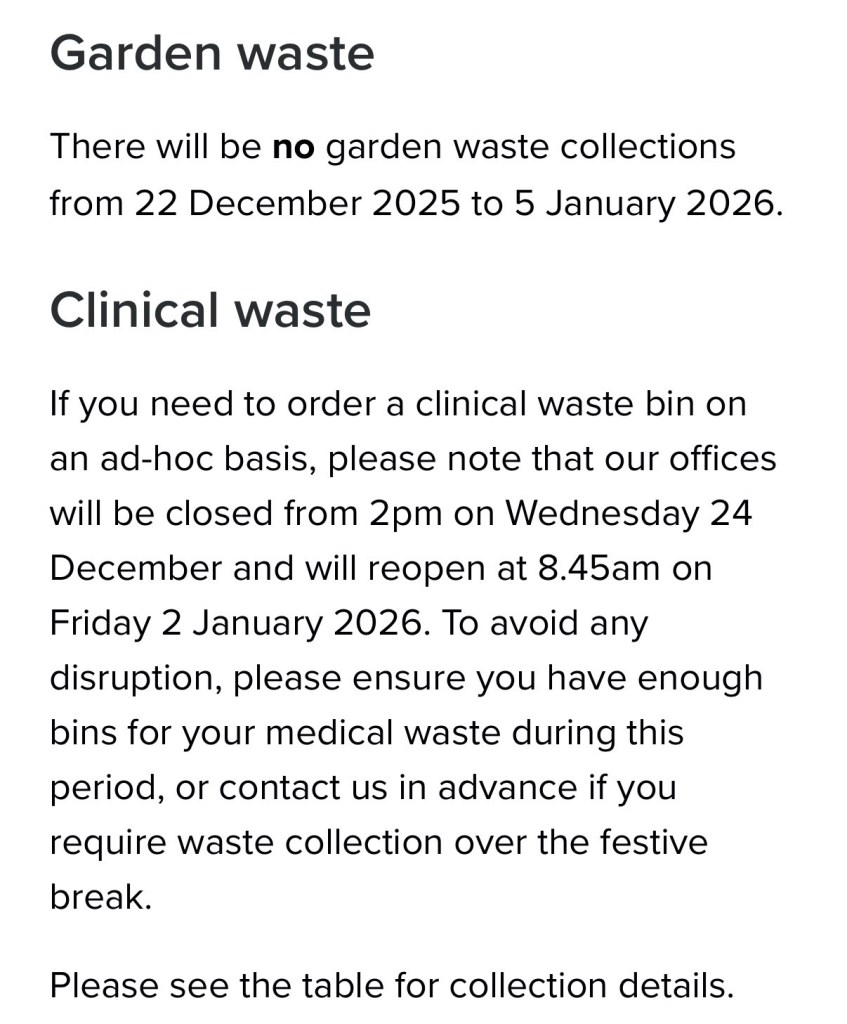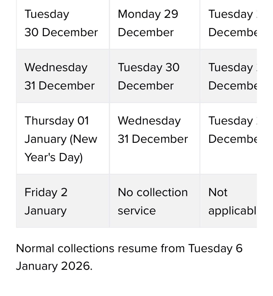 Our contractor, Biffa, will be carrying out collections over the Christmas and New Year period 2025 to 2026, however, there will be changes to your bin collections.